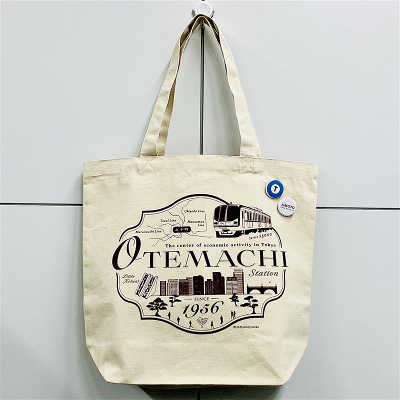大手町をイメージするランドマークや観光名所などのモチーフを1つのデザインにしてトートバックにしました。