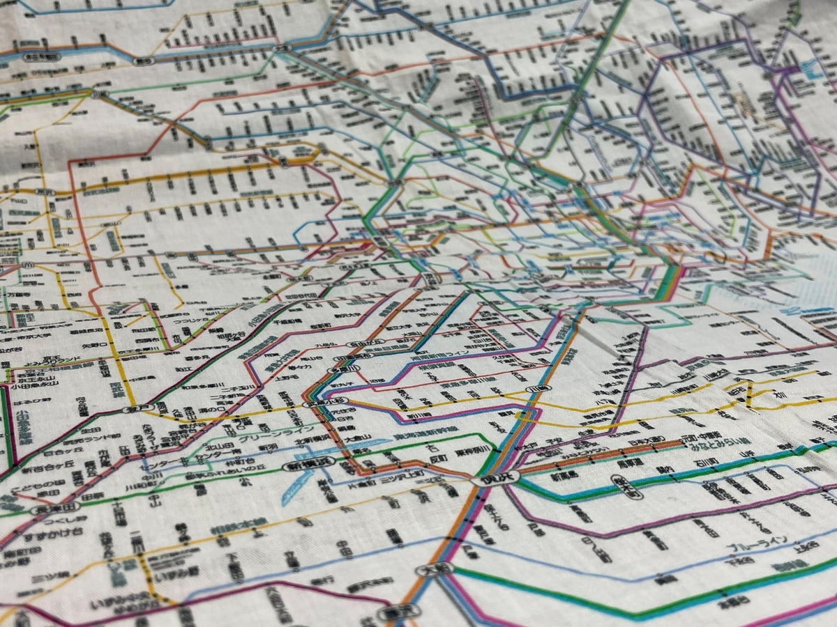 首都圏のJR・私鉄・地下鉄などの路線図がデザインされたハンカチです。
