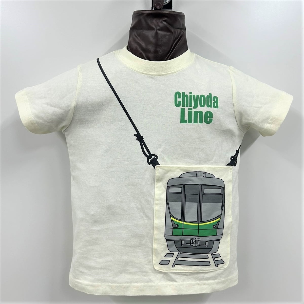正面ポケットに千代田線16000系を大きくデザインした、子ども用のTシャツです。