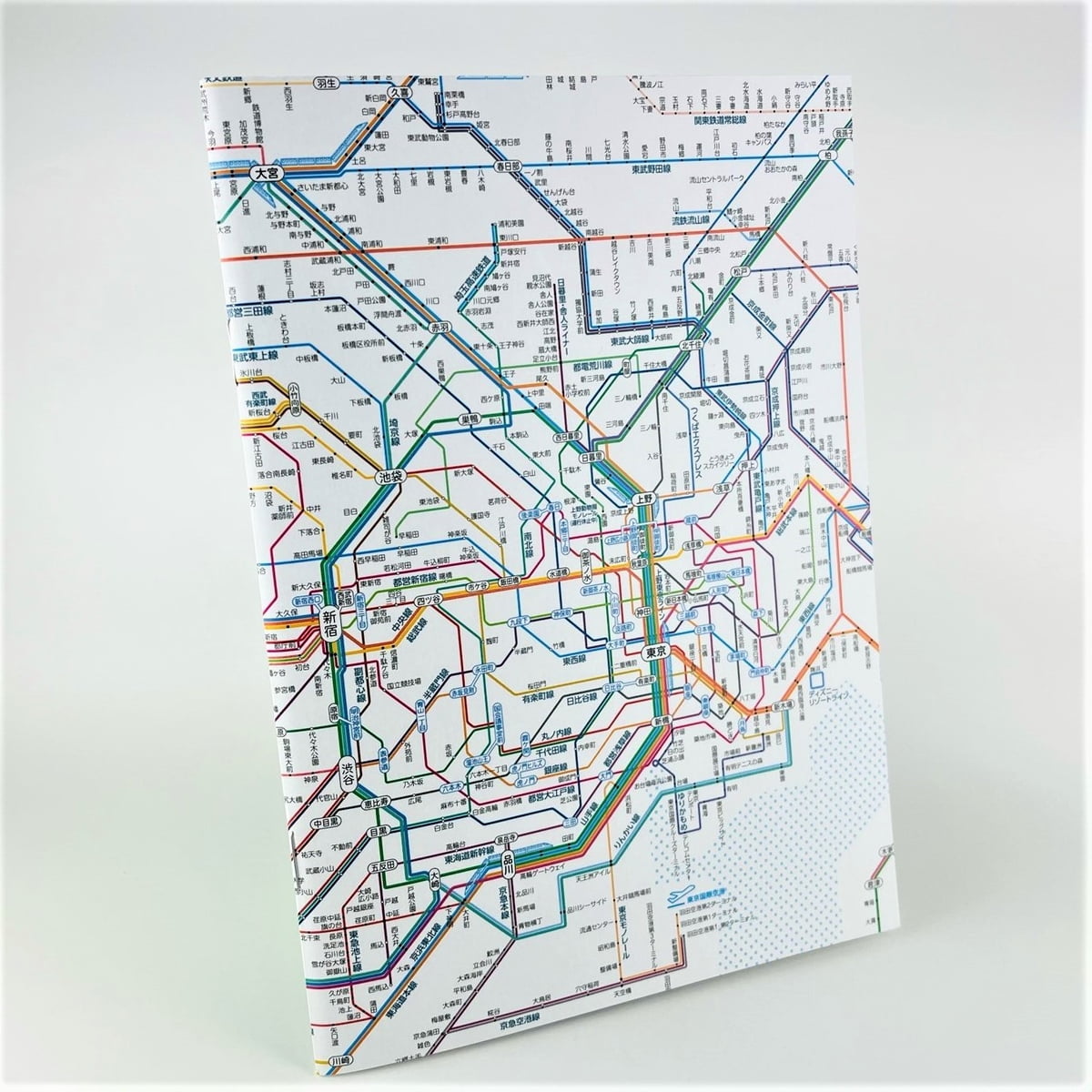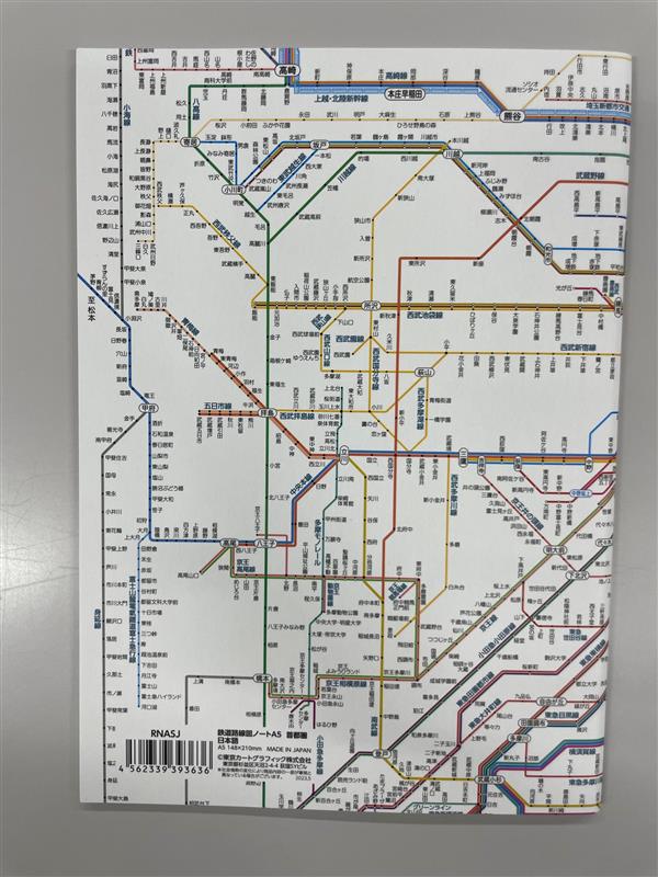 表紙・背表紙に首都圏のJR・私鉄・地下鉄などの路線図がデザインされた、A5サイズのノートです。