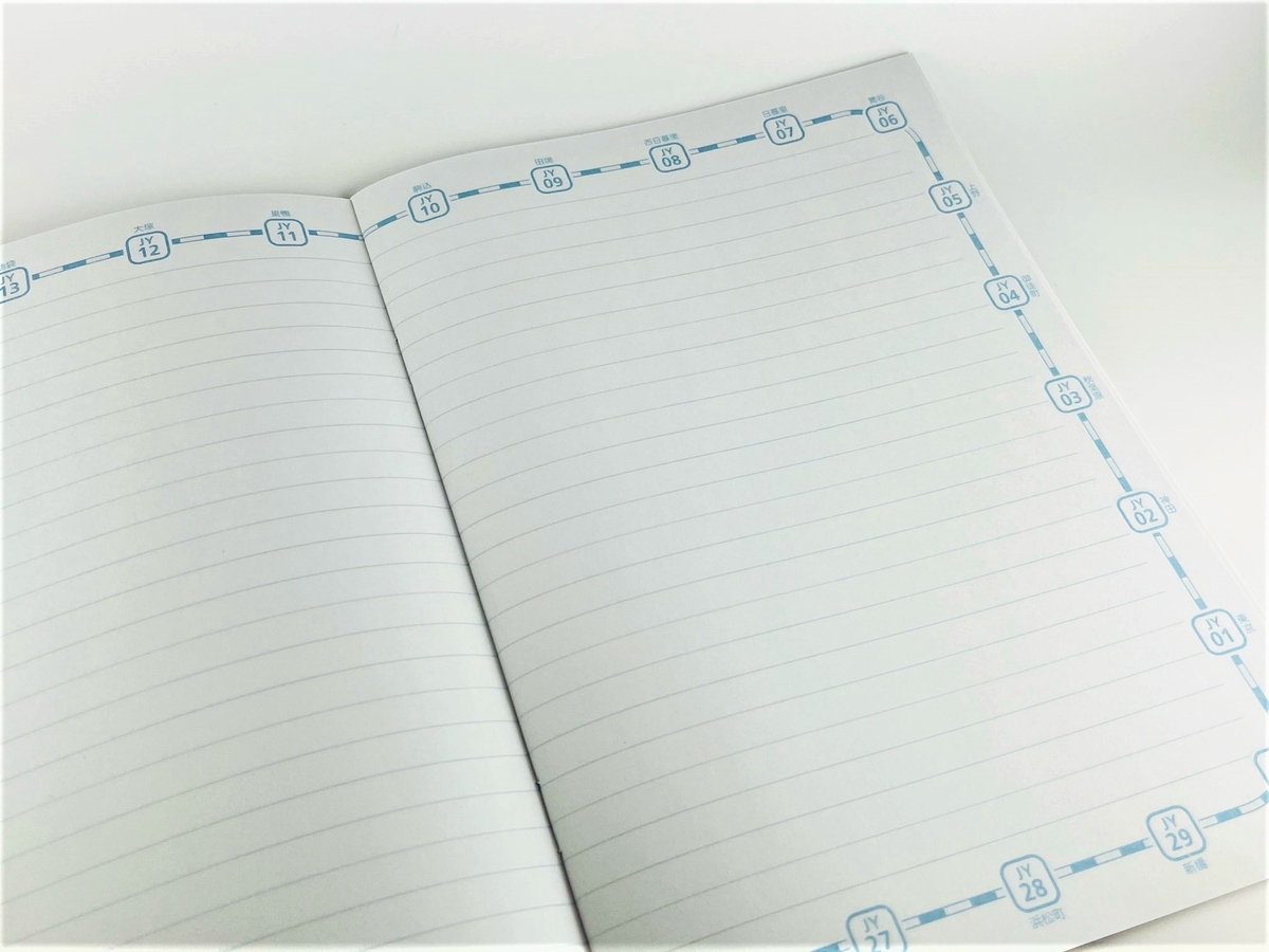 各ページには山手線一周の駅名が記載されています。