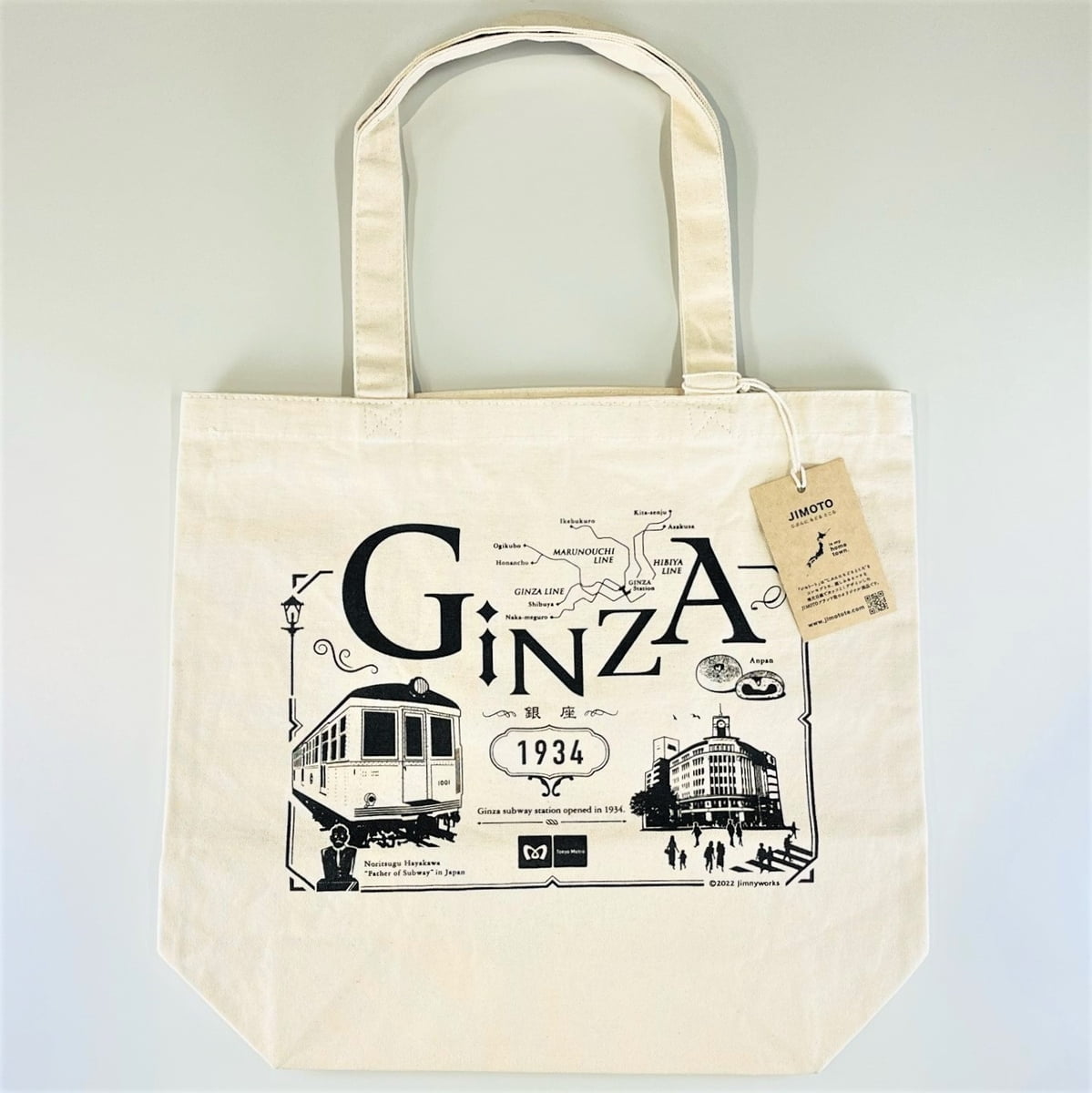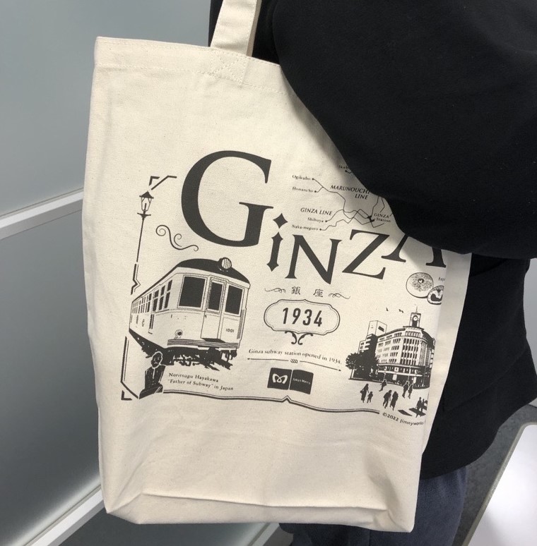 2022年9月に弊社公式Twitter及び東京メトログッズ取扱い店舗で行った、銀座をイメージする「銀座駅」、「ランドマーク・観光名所」、「名物・名産品」についてアンケート調査で回答の多かったモチーフを1つのデザインにしてトートバックにしました。