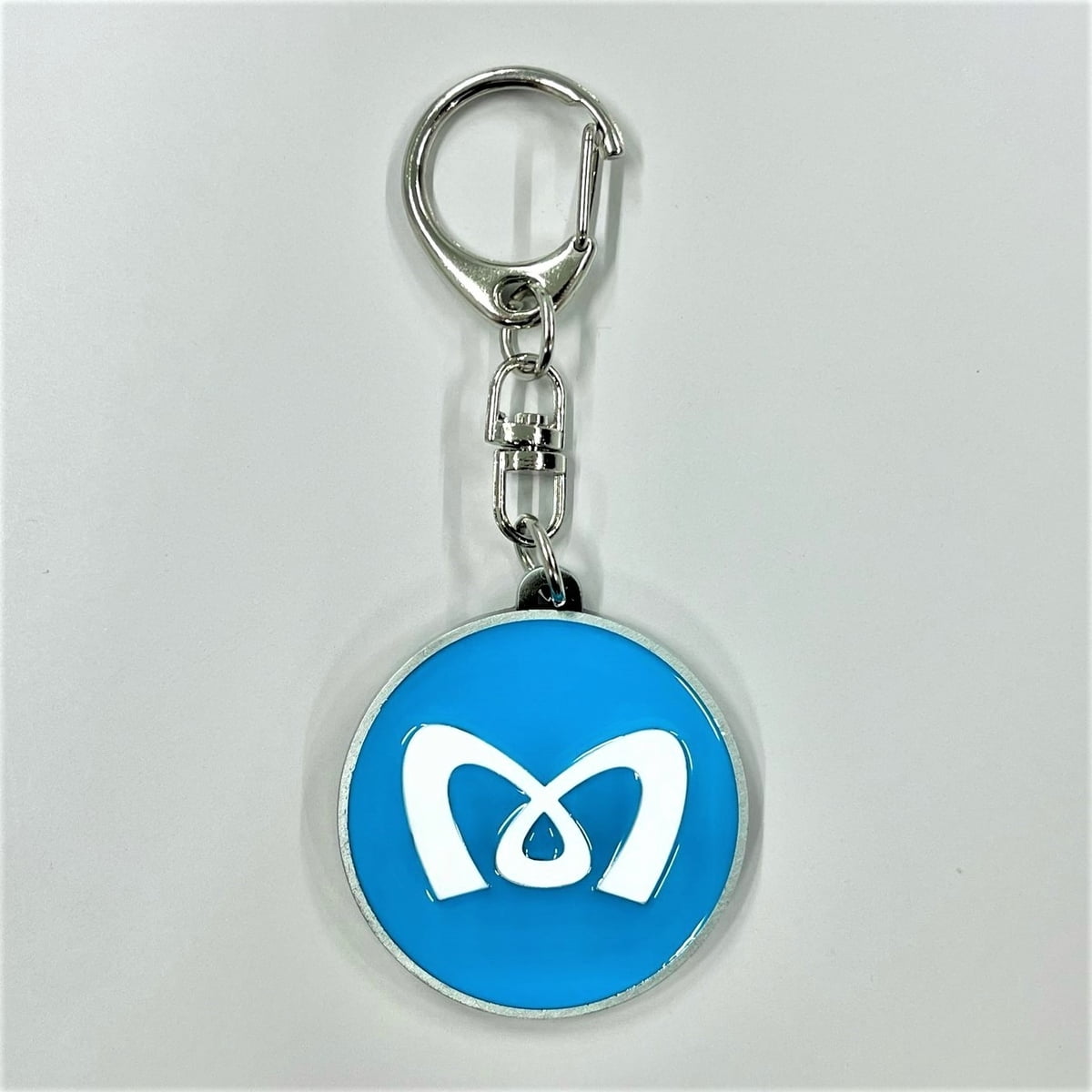 東京メトロ発足時の駅サインをモチーフにした丸形のMマークのキーホルダーです。