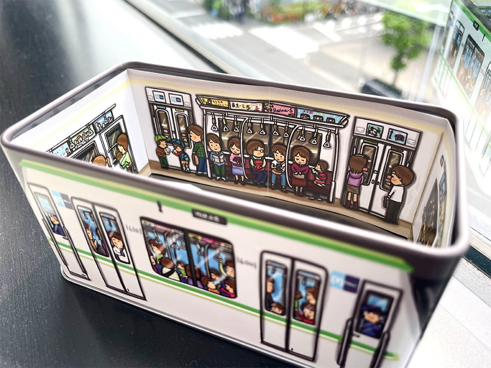 千代田線16000系を愛らしくデフォルメしたデザインの缶に詰めてお送りいたします。