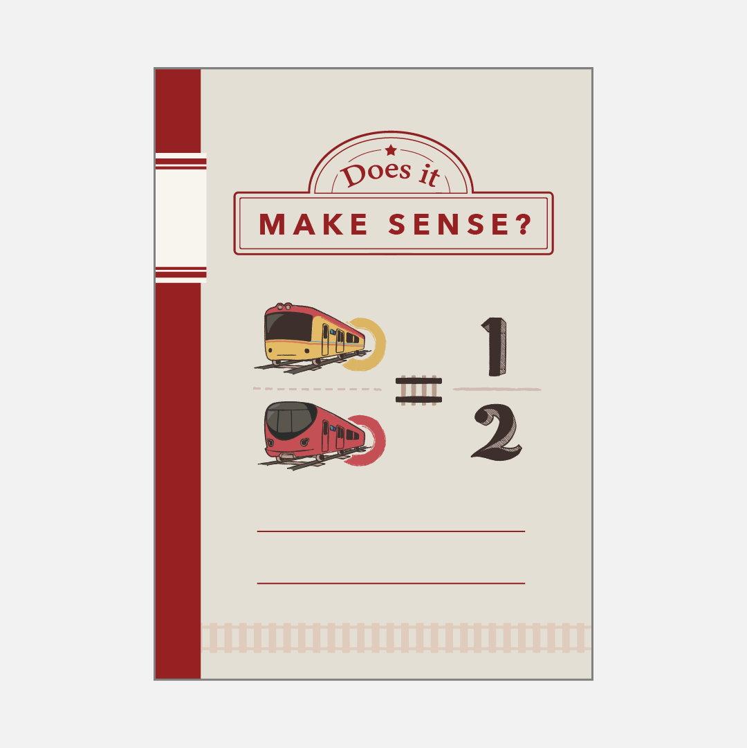 2つの車両が数式に代入されたデザインが表紙に描かれたA5サイズのノートです。