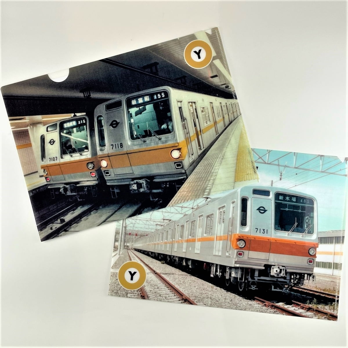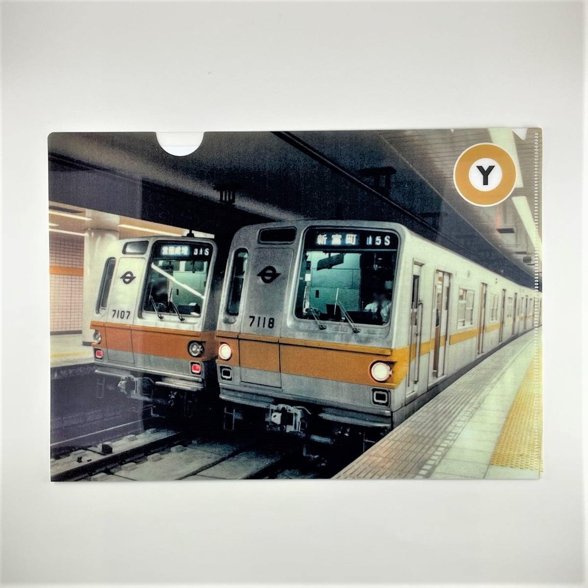 有楽町線で活躍した7000系の写真と駅名標をデザインにしたクリアファイル2枚セットです。
