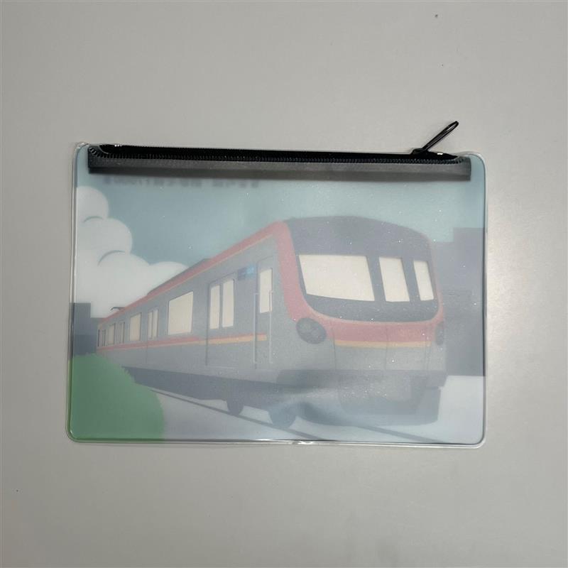 車両を可愛らしくデザインしたビニールポーチです。