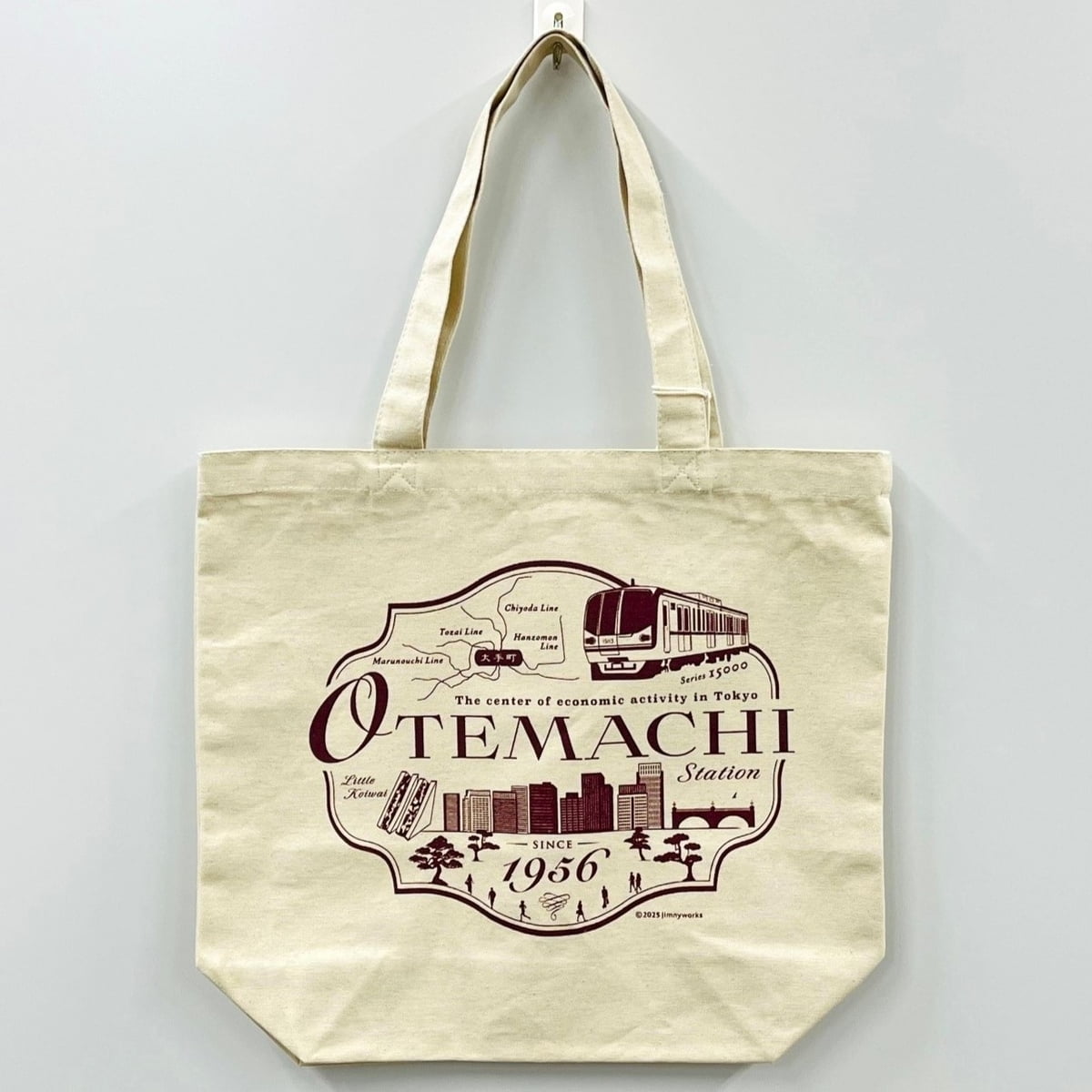 大手町をイメージするランドマークや観光名所などのモチーフを1つのデザインにしてトートバックにしました。