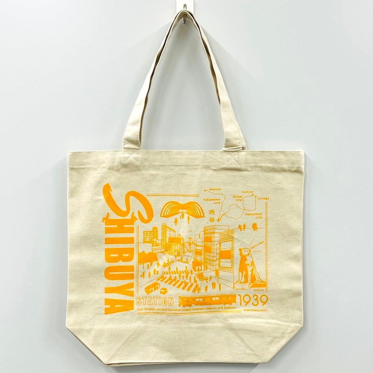 渋谷をイメージするランドマークや観光名所などのモチーフを1つのデザインにしてトートバックにしました。