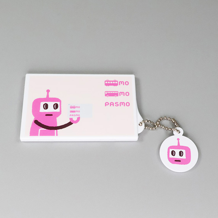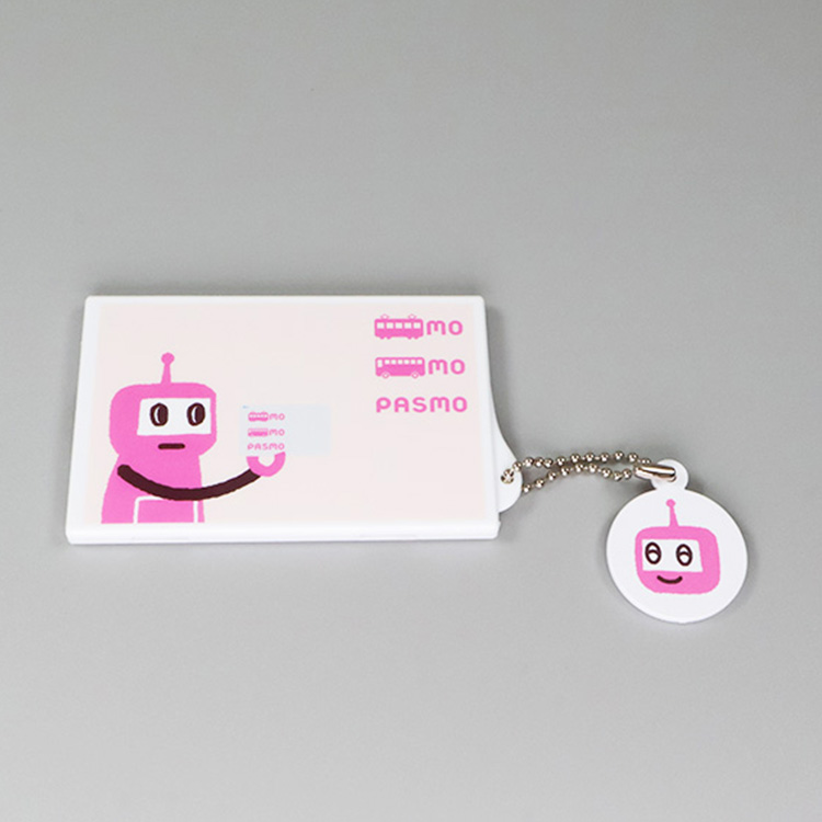 PASMOのロボットのカードケース(タッチアンドゴー)です。裏表で柄が異なるチャームがついています。