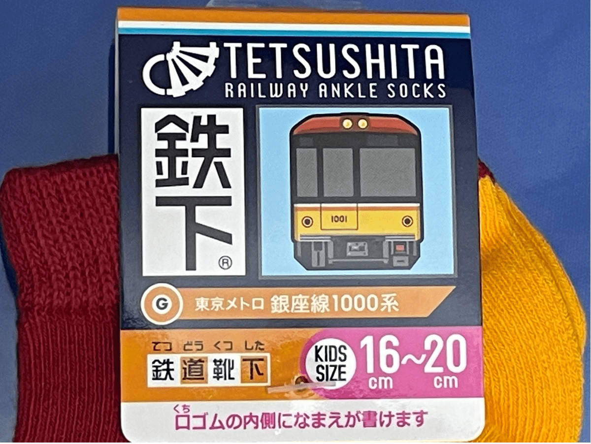 銀座線の1000系がデザインされた、お子さま向けのくるぶしソックス「鉄下」です。