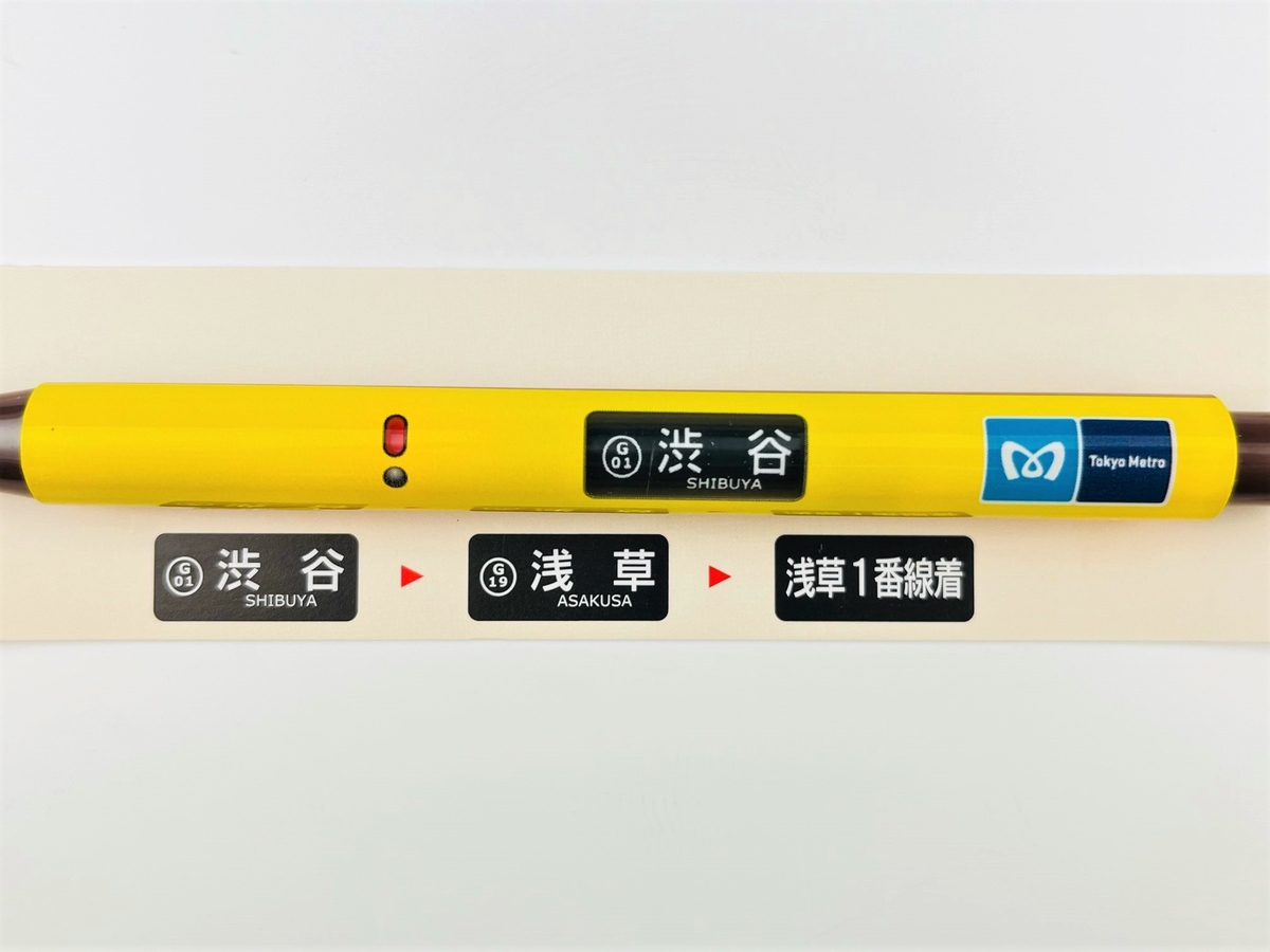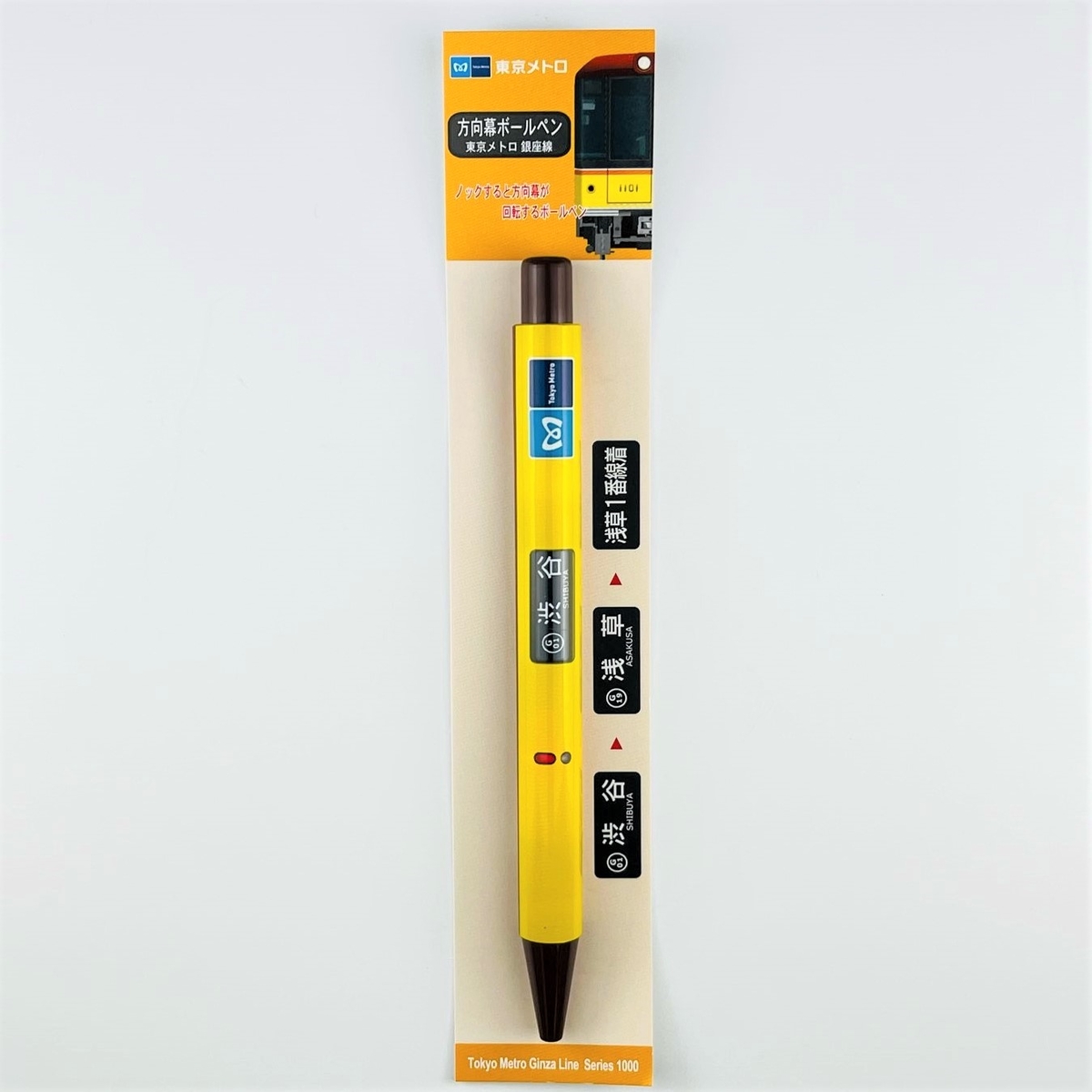 銀座線の1000系をイメージした、ノックするたびに中央部の行先が変わる楽しいボールペンです。